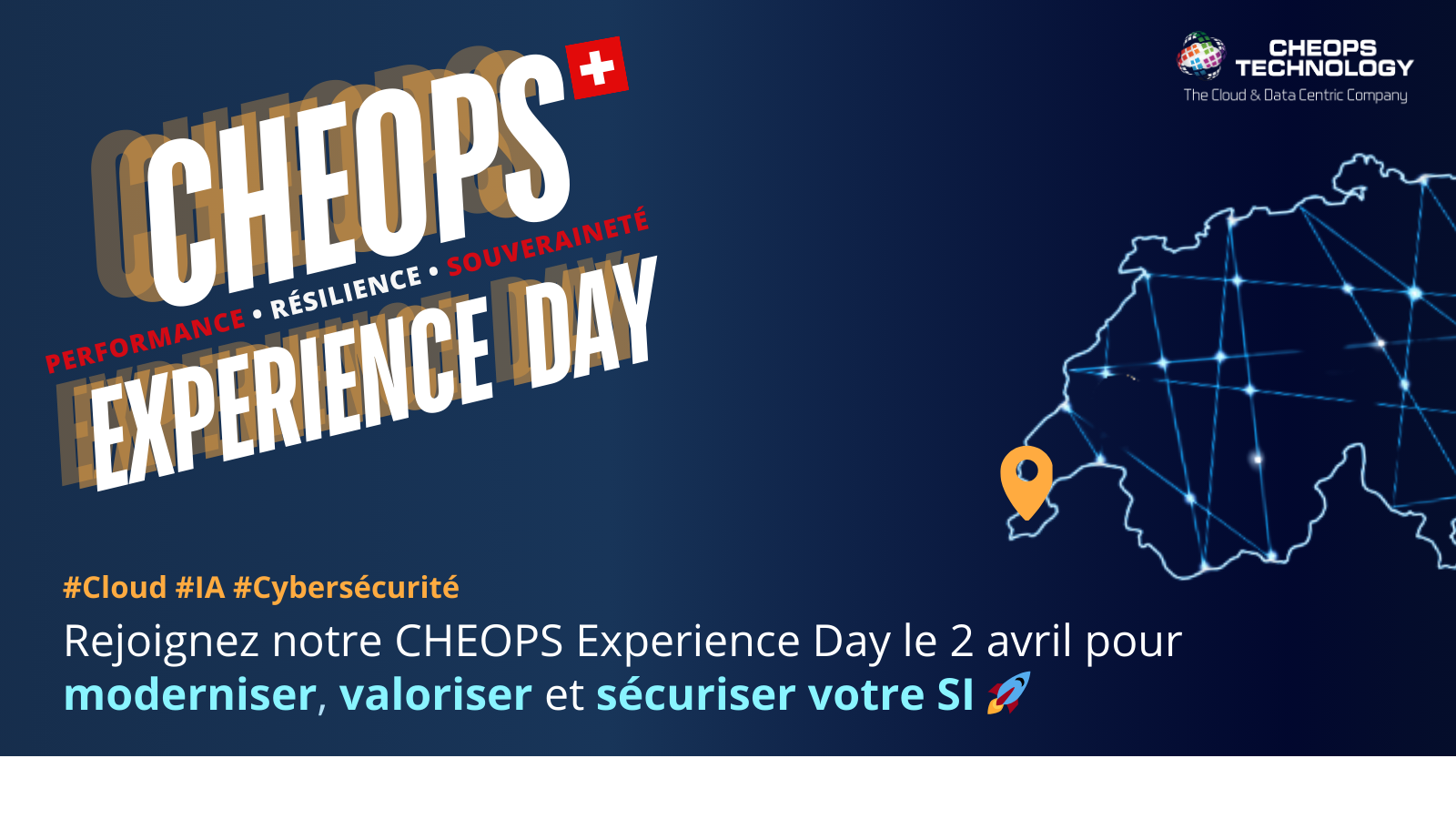 Dans un contexte où cloud, IA et cybersécurité transforment profondément l’IT, la CHEOPS Experience Day vous offre une demi‑journée immersive pour comprendre comment moderniser votre système d’information tout en gardant le contrôle.